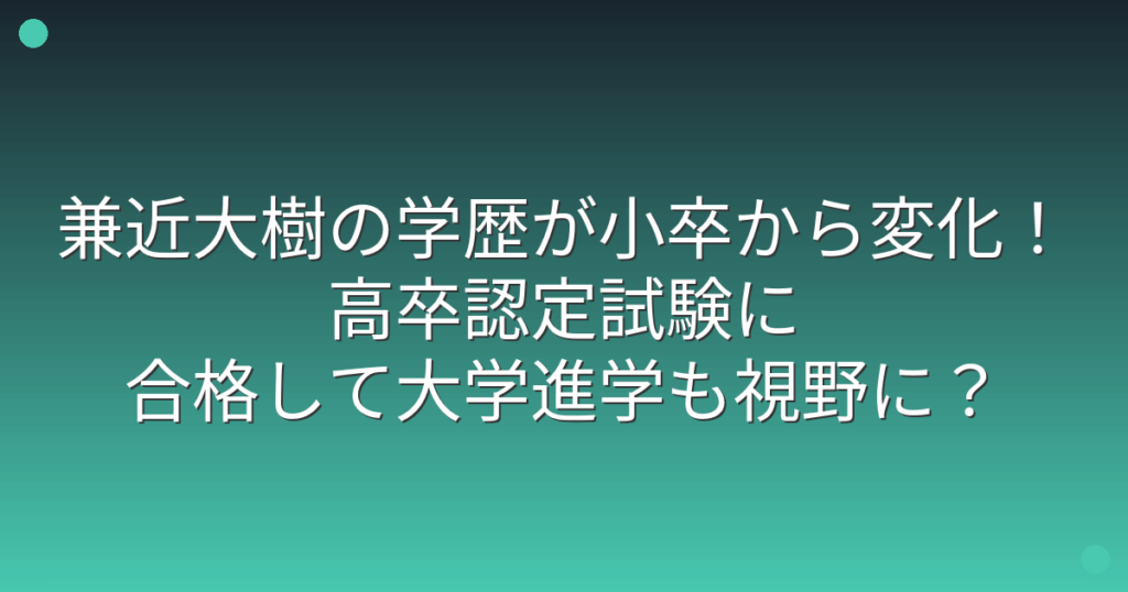 兼近大樹の学歴が小卒から変化!高卒認定試験に合格して大学進学も視野に?