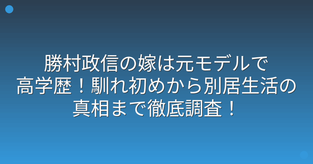 勝村政信の嫁は元モデルで高学歴!馴れ初めから別居生活の真相まで徹底調査!