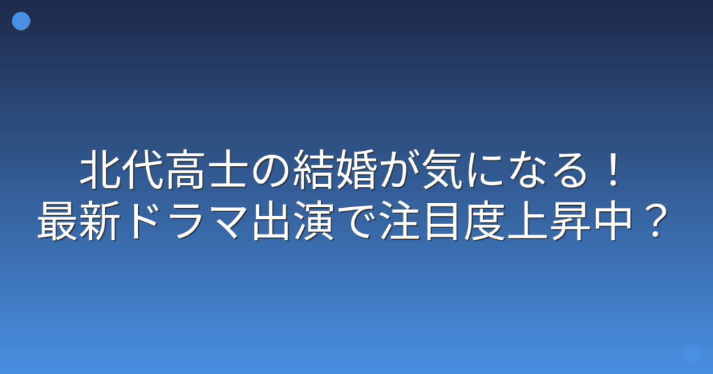 北代高士の結婚が気になる!最新ドラマ出演で注目度上昇中?