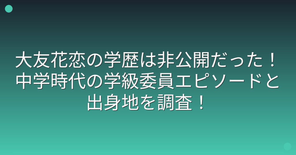 大友花恋の学歴は非公開だった!中学時代の学級委員エピソードと出身地を調査!