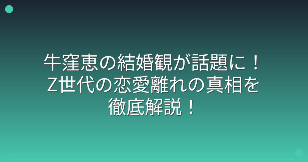 牛窪恵の結婚観が話題に!Z世代の恋愛離れの真相を徹底解説!