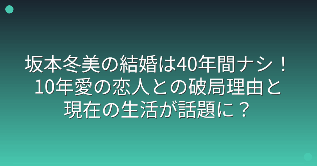 演歌界を代表する歌姫として知られる坂本冬美さんの結婚について、ファンの間で話題になっています。 2025年に歌手デビュー40周年を迎えた坂本冬美さんですが、実は結婚していないことをご存知でしょうか。 そこで今回は、坂本冬美さんの結婚に関する真相... -