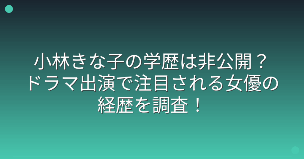 2025年放送のドラマ『娘の命を奪ったヤツを殺すのは罪ですか?』に出演し、注目を集めている小林きな子さん。 ドラマではお受験や学歴問題がテーマとなっていることもあり、小林きな子さん自身の学歴について気になっている方も多いのではないでしょうか。...