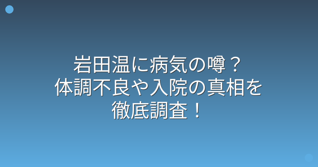 岩田温に病気の噂?体調不良や入院の真相を徹底調査!