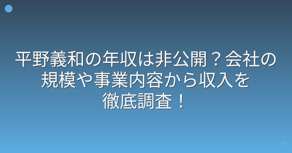 平野義和の年収は非公開?会社の規模や事業内容から収入を徹底調査!