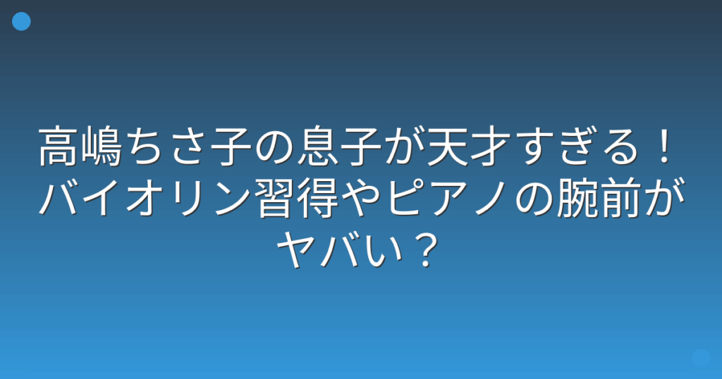 高嶋ちさ子の息子が天才すぎる!バイオリン習得やピアノの腕前がヤバい?