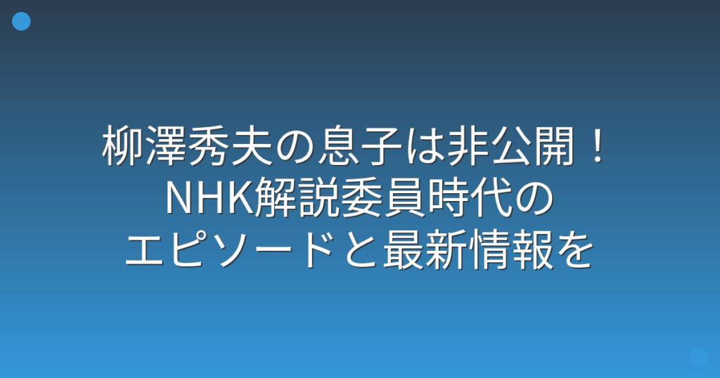 元NHK解説委員の柳澤秀夫さんについて、息子に関する情報を知りたいという声が多く寄せられていますね。 柳澤さんは現在もテレビ朝日系「大下容子ワイド!スクランブル」などで活躍されていますが、ご家族に関する情報は非常に限られています。 そこで今回... -