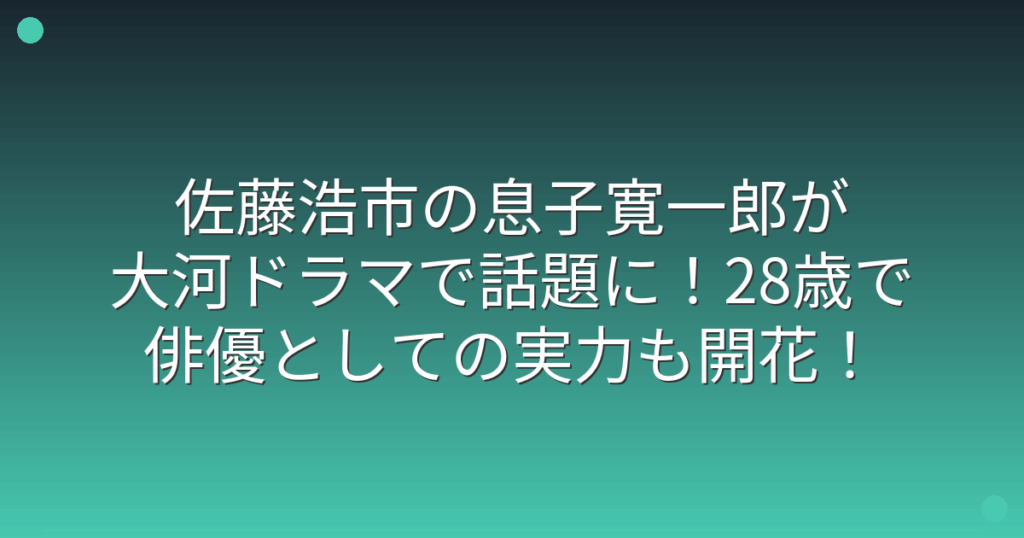 佐藤浩市の息子寛一郎が大河ドラマで話題に!28歳で俳優としての実力も開花!