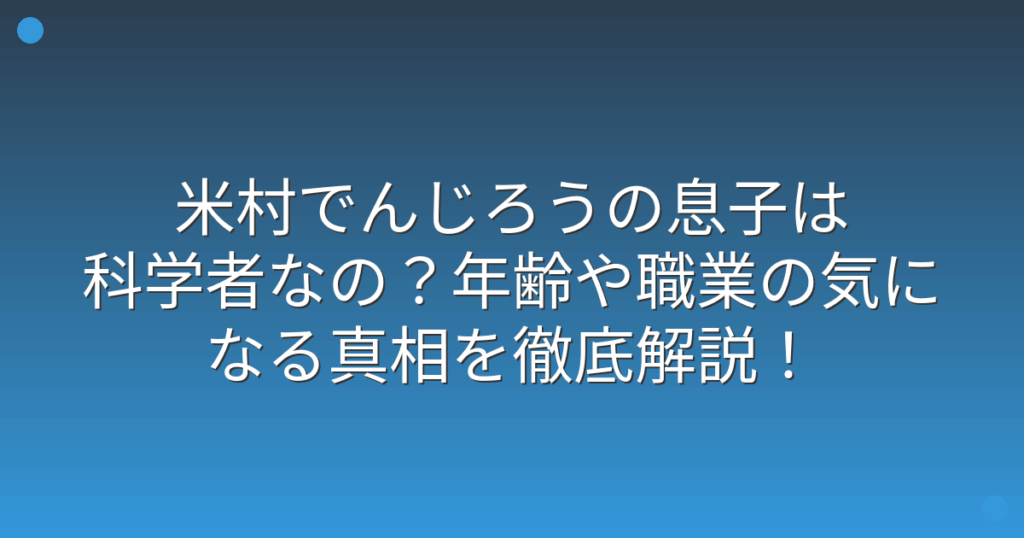 米村でんじろうの息子は科学者なの?年齢や職業の気になる真相を徹底解説!