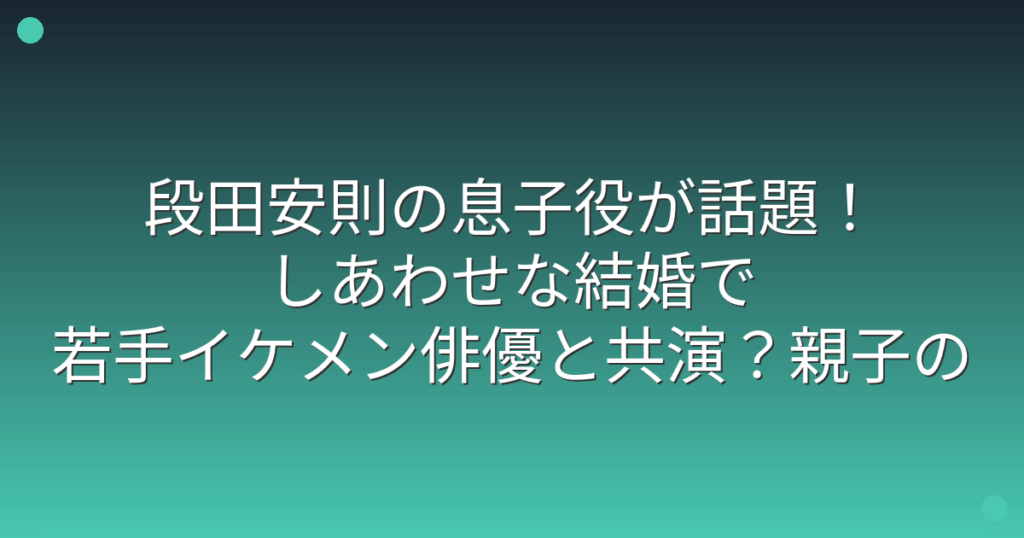 段田安則の息子役が話題!しあわせな結婚で若手イケメン俳優と共演?親子の絆に感動の声!