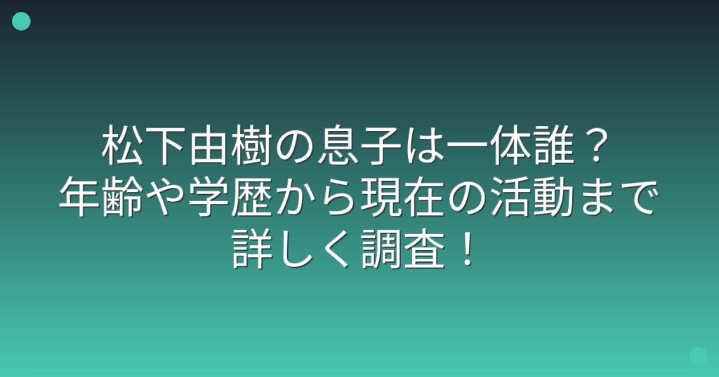 松下由樹の息子は一体誰?年齢や学歴から現在の活動まで詳しく調査!
