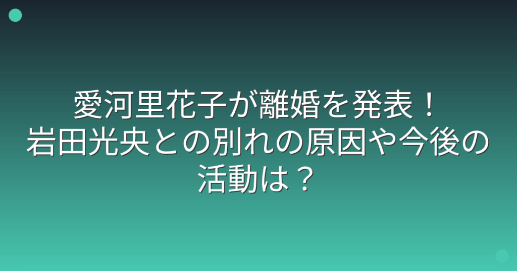 愛河里花子が離婚を発表!岩田光央との別れの原因や今後の活動は?