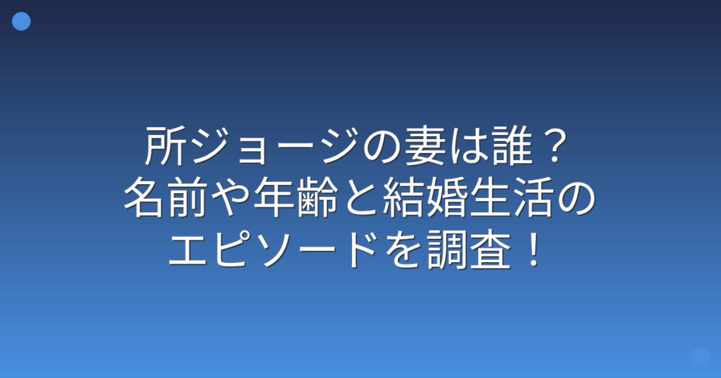 所ジョージの妻は誰?名前や年齢と結婚生活のエピソードを調査!