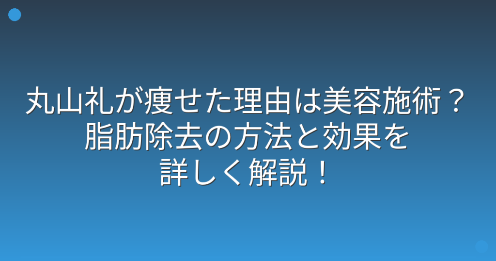 丸山礼が痩せた理由は美容施術?脂肪除去の方法と効果を詳しく解説!