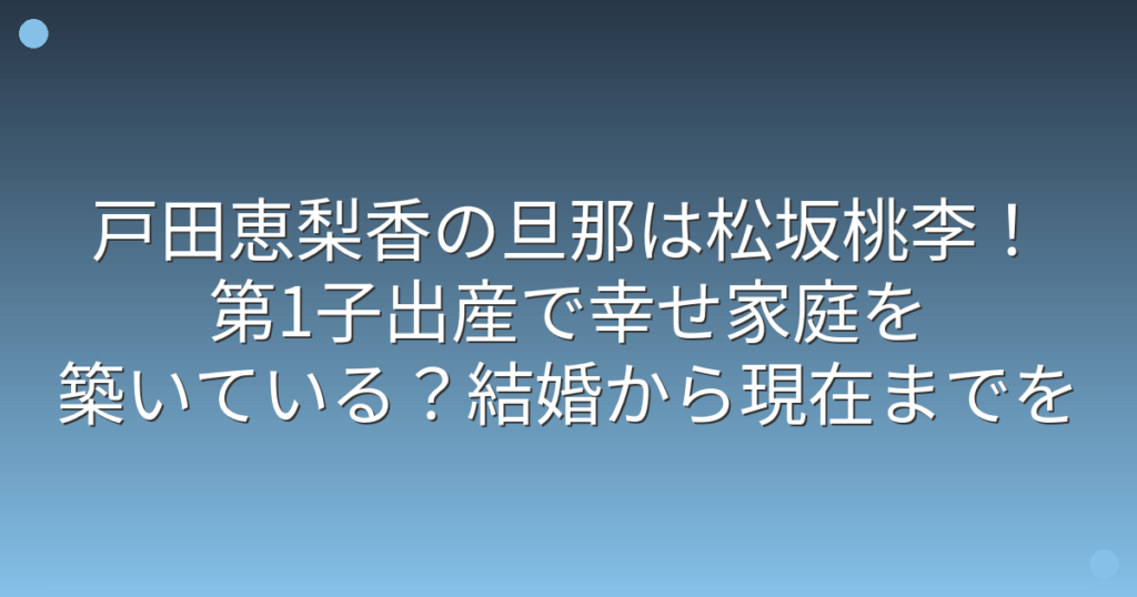 人気女優の戸田恵梨香さんと松坂桃李さんの結婚は、多くのファンを驚かせ、祝福の声で溢れました。 そして2023年には第1子が誕生し、さらなる話題を呼んでいます。 そこで今回は、戸田恵梨香さんの旦那さんである松坂桃李さんとの結婚生活や、現在の様子に... -