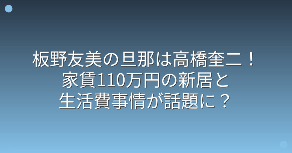 元AKB48の板野友美さんと旦那さんの高橋奎二さんの新居や生活スタイルが、最近大きな話題となっています。 特に家賃110万円以上という豪華な新居のルームツアー動画が公開され、注目を集めています。 そこで今回は、板野友美さんの旦那さんについて、プロ... -
