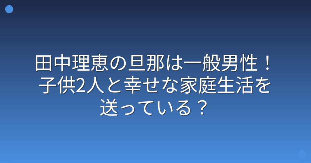 田中理恵の旦那は一般男性!子供2人と幸せな家庭生活を送っている?