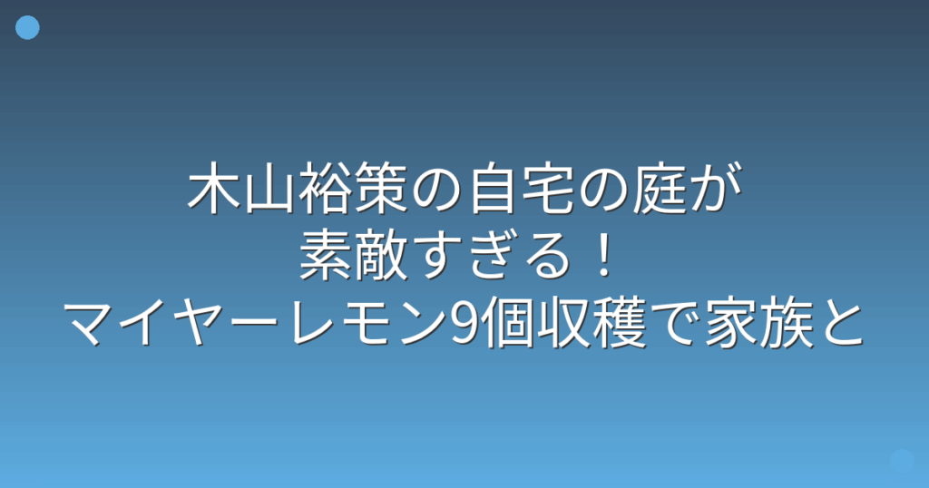 木山裕策の自宅の庭が素敵すぎる!マイヤーレモン9個収穫で家族との生活も充実?