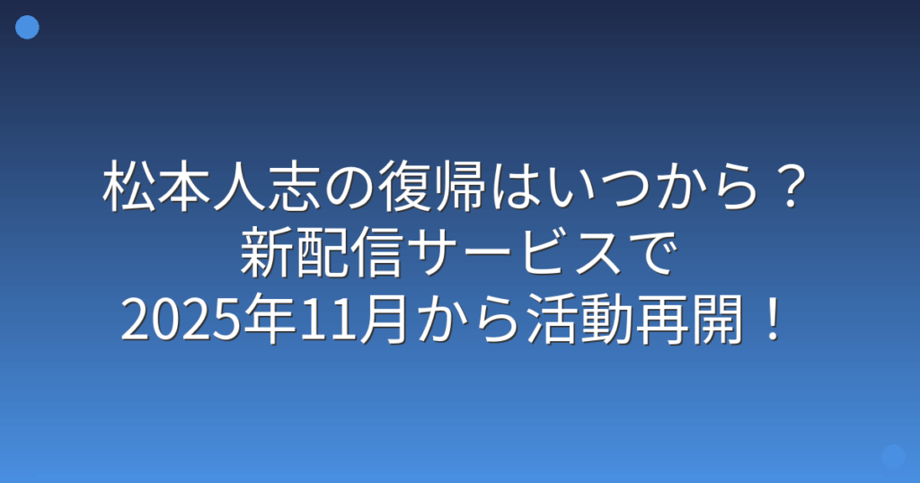 松本人志の復帰はいつから?新配信サービスで2025年11月から活動再開!詳しい内容と真相を徹底解説!