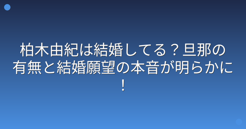 柏木由紀は結婚してる?旦那の有無と結婚願望の本音が明らかに!