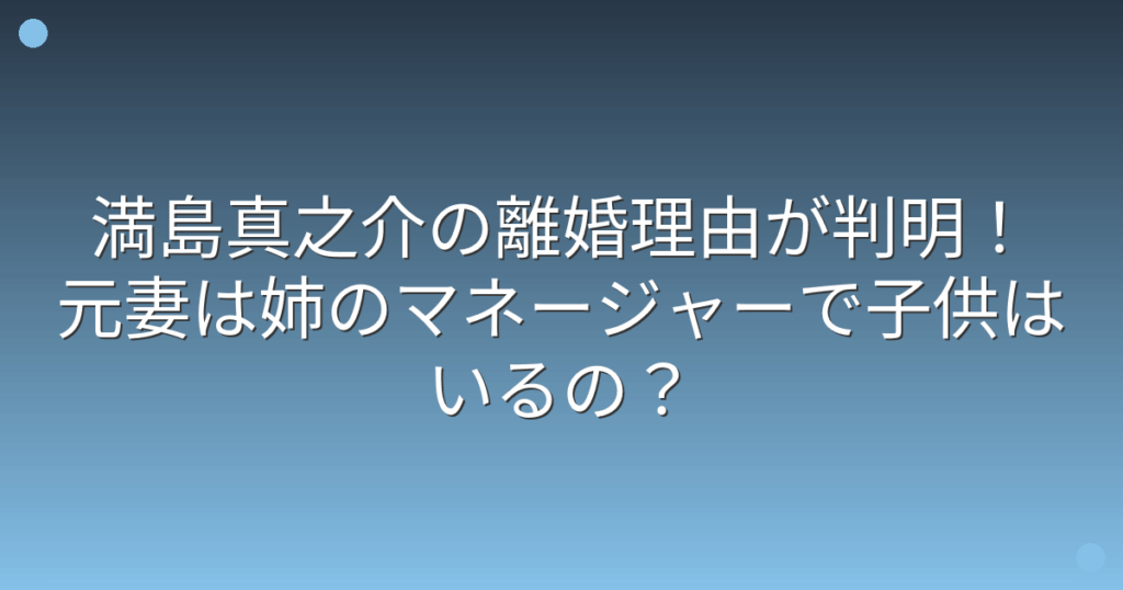 俳優として活躍する満島真之介さんの離婚が話題になっていますね。 姉の満島ひかりさんとともに芸能界で活躍する満島真之介さんですが、過去に離婚を経験していることをご存知でしょうか。 元妻が姉のマネージャーだったことや、離婚の理由について気にな...