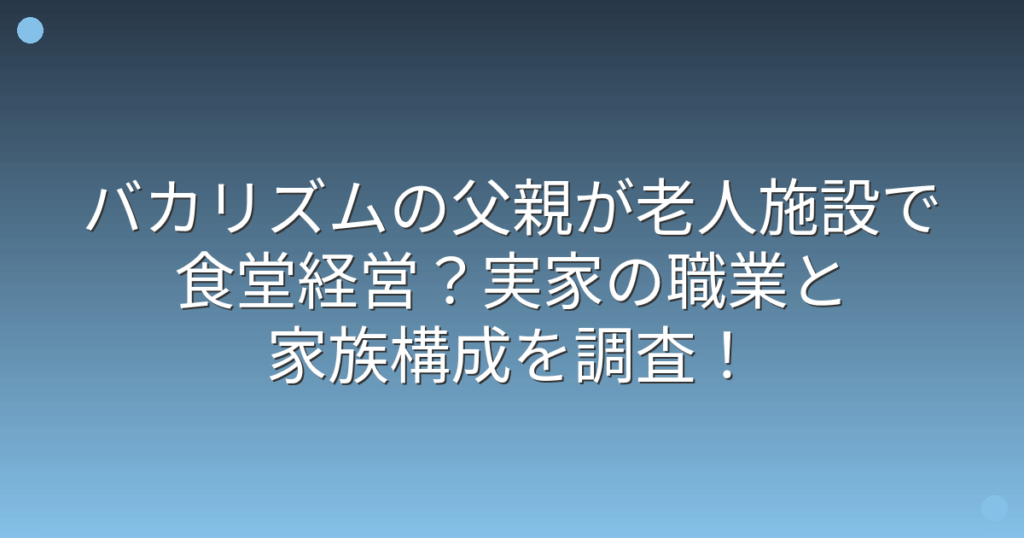 お笑い芸人として活躍するバカリズムさんの父親について話題になっていますね。 2025年10月に放送されたテレビ番組で、バカリズムさんが実家の職業について初めて明かし、共演者を驚かせました。 そこで今回は、バカリズムさんの父親の職業や実家の情報、... -