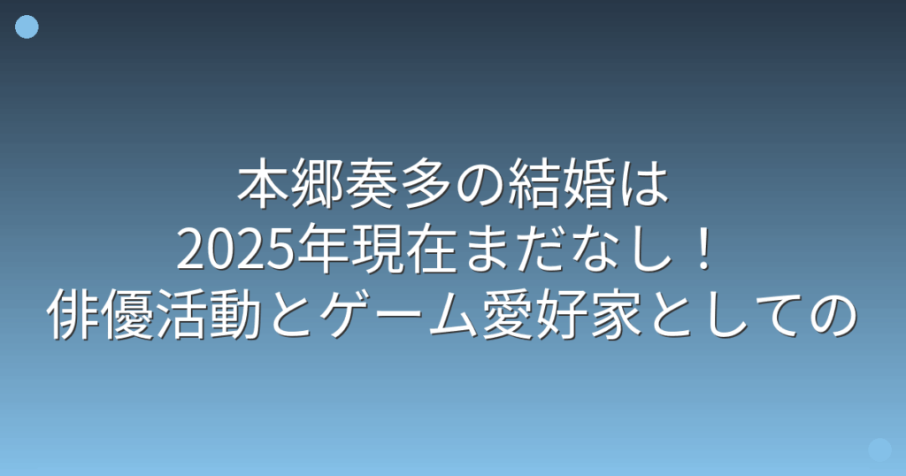 本郷奏多の結婚は2025年現在まだなし!俳優活動とゲーム愛好家としての活躍が話題に?