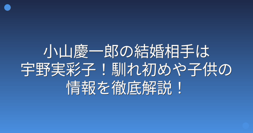 小山慶一郎の結婚相手は宇野実彩子!馴れ初めや子供の情報を徹底解説!