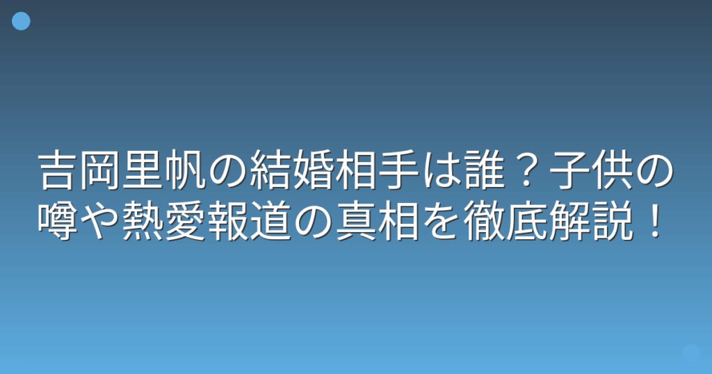 人気女優の吉岡里帆さんの結婚について、最近ネット上で様々な憶測が飛び交っていますね。 同世代の女優さんたちの結婚が相次ぐ中、吉岡里帆さんの結婚についても注目が集まっています。 そこで今回は、吉岡里帆さんの結婚に関する最新情報や噂について、... -