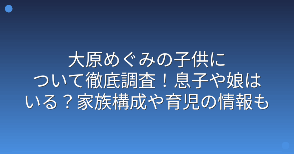 大原めぐみの子供について徹底調査!息子や娘はいる?家族構成や育児の情報も気になる!