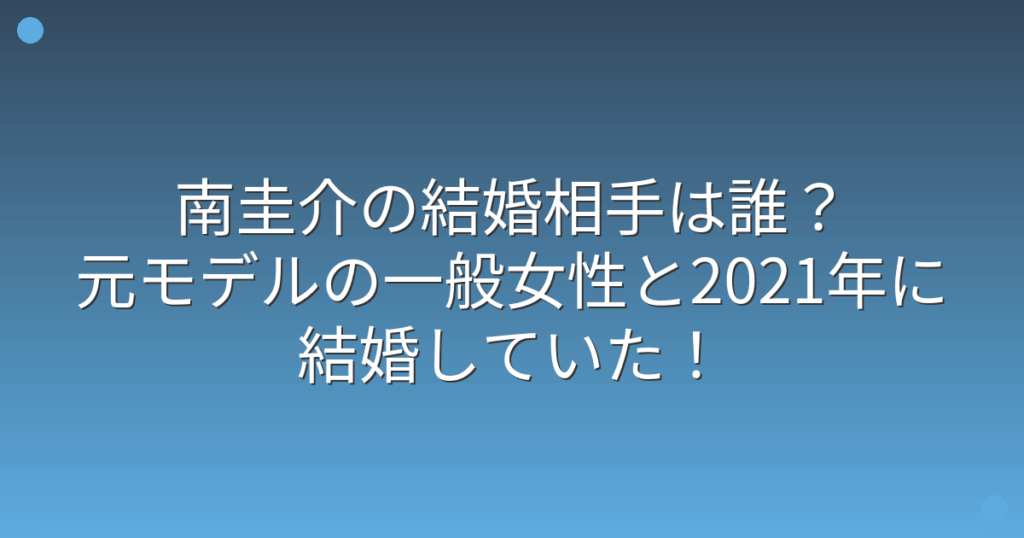 南圭介の結婚相手は誰?元モデルの一般女性と2021年に結婚していた!