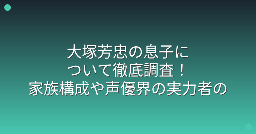 人気声優として活躍している大塚芳忠さんについて、最近ネット上で息子に関する情報を探る声が増えているようです。 大塚芳忠さんは数々の名作アニメや映画の吹き替えで活躍されているベテラン声優ですが、プライベートについてはあまり知られていません。... -
