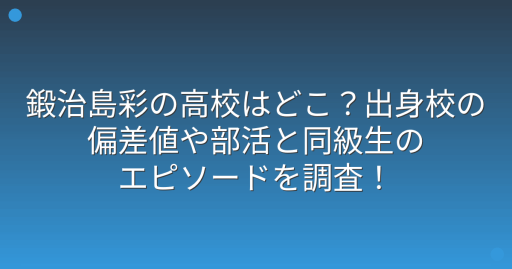 鍛治島彩の高校はどこ?出身校の偏差値や部活と同級生のエピソードを調査!