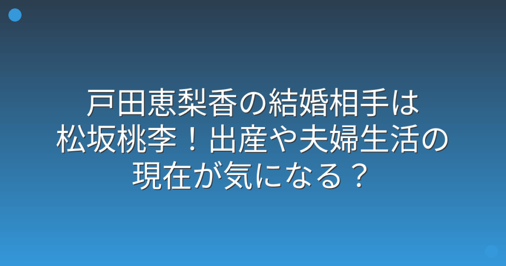 人気女優の戸田恵梨香さんの結婚生活が、多くの方の注目を集めていますね。 2020年に俳優の松坂桃李さんと結婚し、2023年には第一子を出産するなど、プライベートでも充実した日々を送っている戸田恵梨香さん。 そこで今回は、戸田恵梨香さんの結婚生活や... -