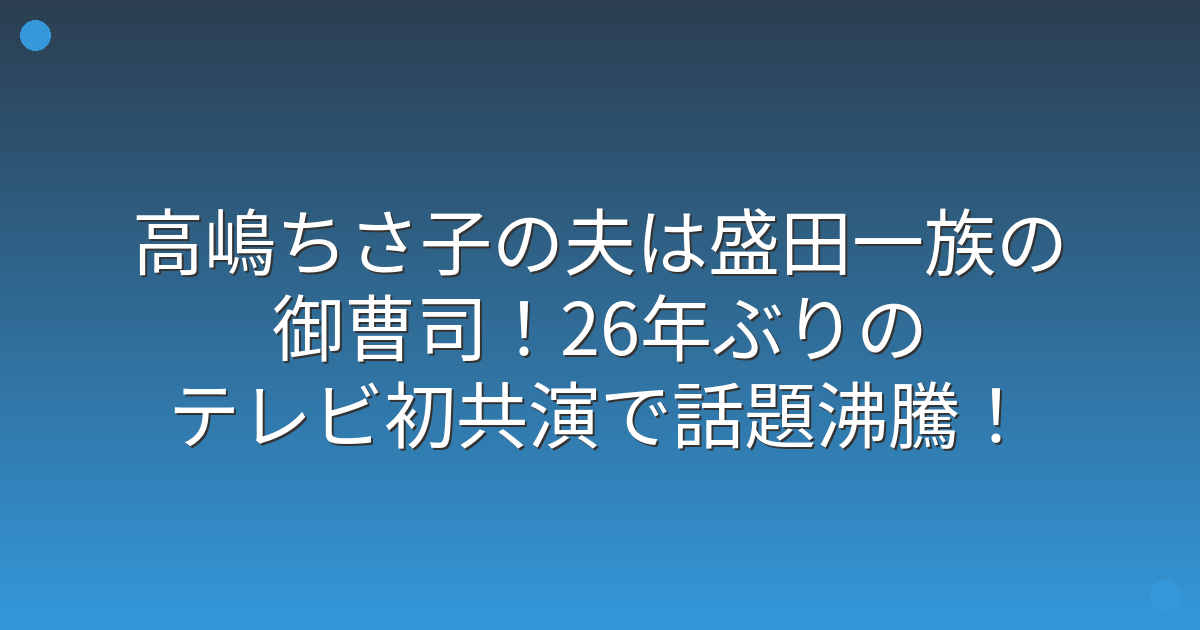 高嶋ちさ子さんと夫・盛田賢司さんの26年ぶりのテレビ共演が大きな話題を呼んでいますね。