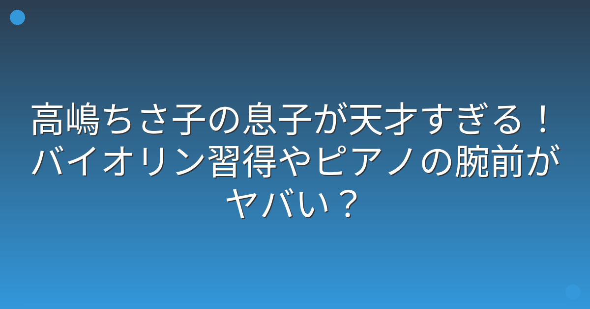 ヴァイオリニストとして有名な高嶋ちさ子さんの厳しい音楽教育が注目を集めていますが, その教育の成果として息子さんたちの音楽的才能が開花しているようです。
