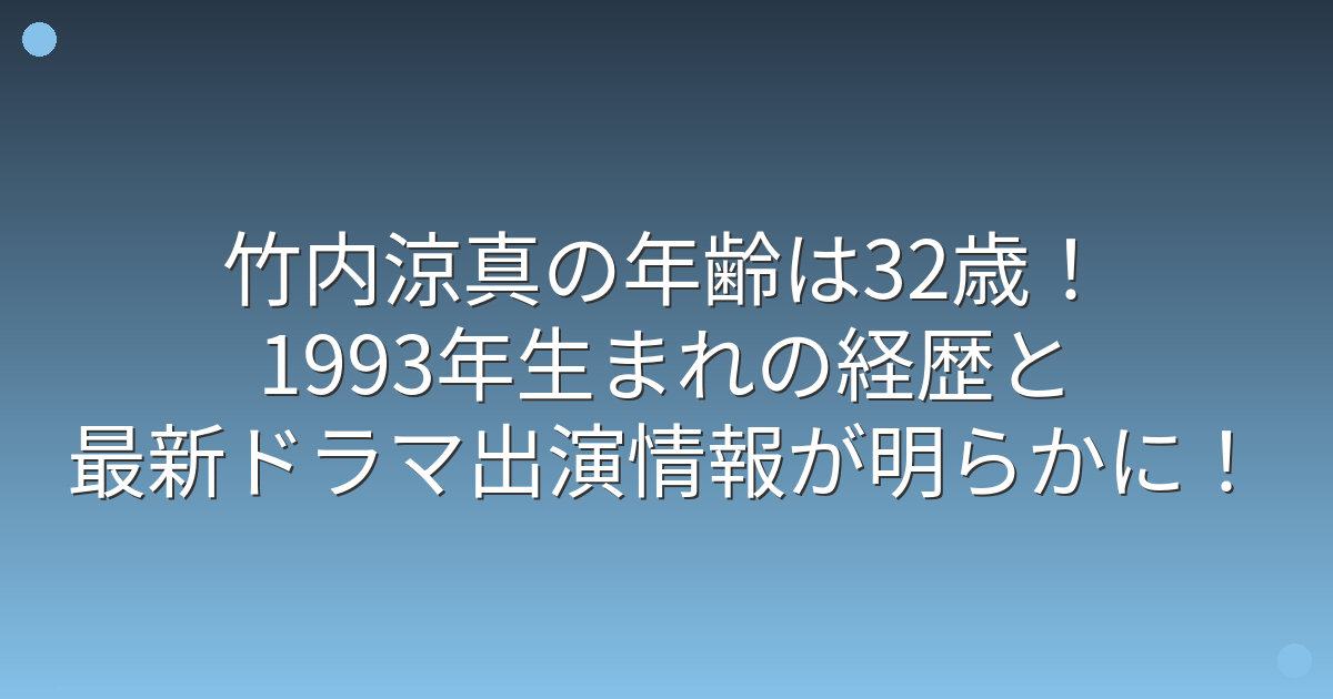 爽やかなルックスと高い演技力で人気を集める竹内涼真さんですが、現在の年齢や生年月日について気になっている方も多いのではないでしょうか。