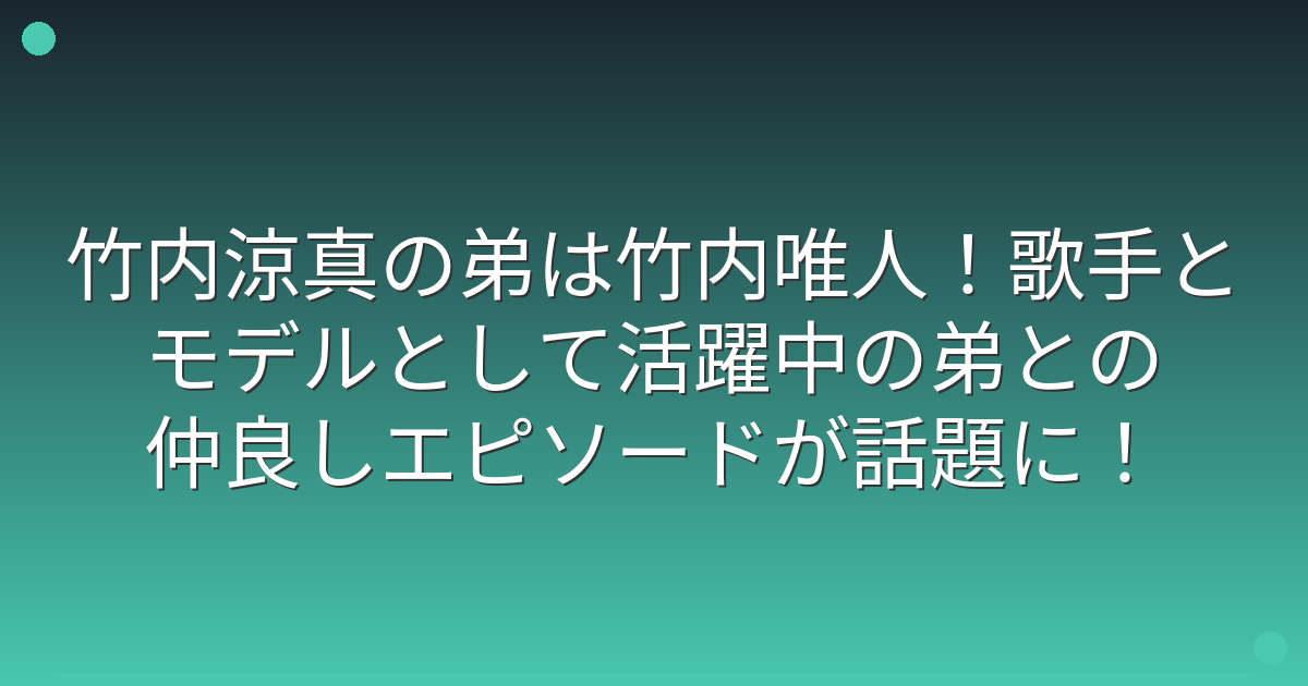 竹内涼真さんの弟は歌手やモデルとして活動しており、兄弟で芸能界で活躍されています。