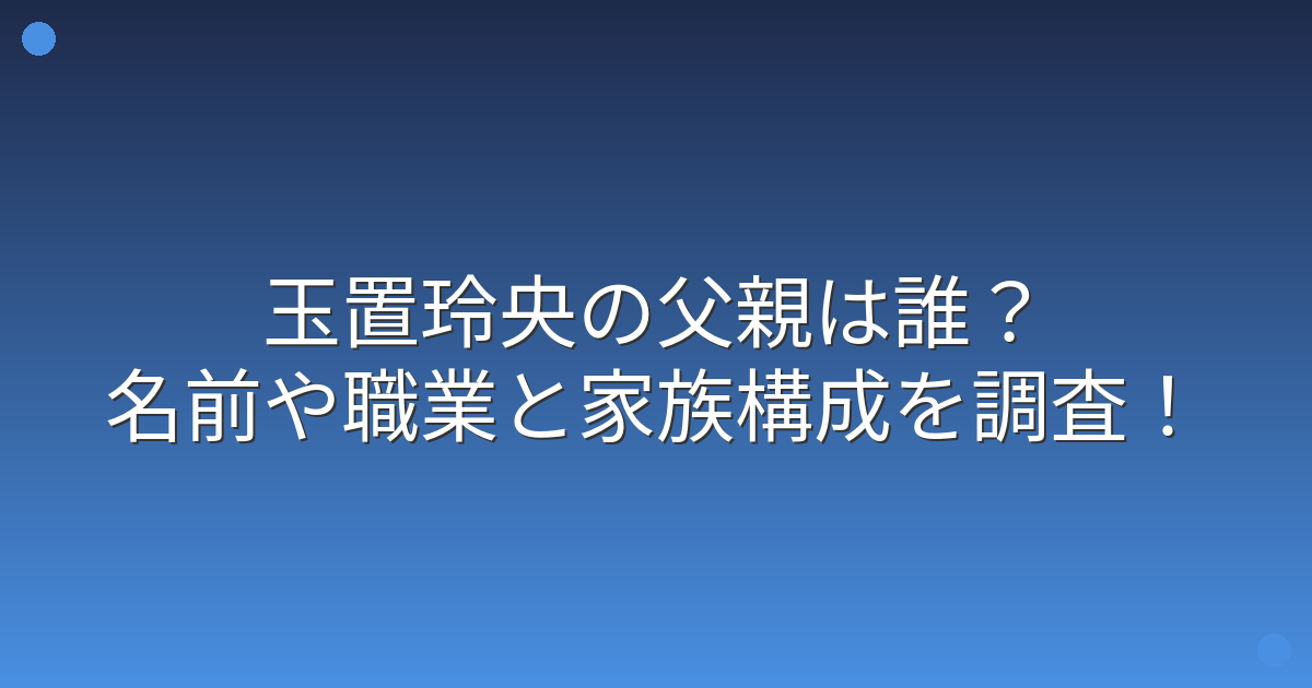 残念ながら、玉置玲央さんの父親の名前や職業、家族構成については公表されておらず、詳しい情報を得ることができませんでした。