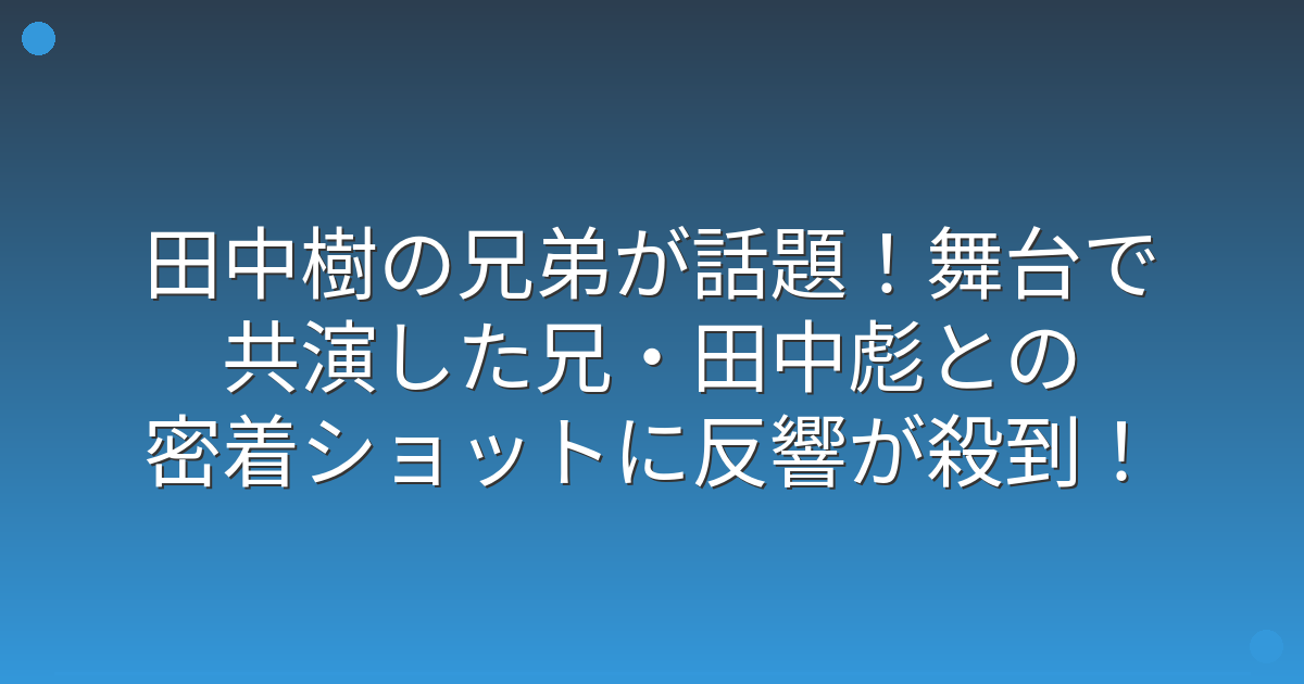 SixTONESの田中樹さんと兄の田中彪さんが、2025年9月に舞台で共演し、大きな話題を呼んでいますね。