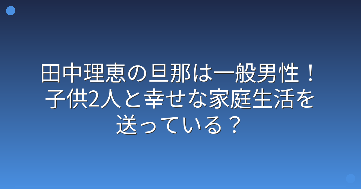 旦那さんについては依然として詳細な情報は明かされていませんが、田中理恵さんの活動を陰ながら支えているようです。