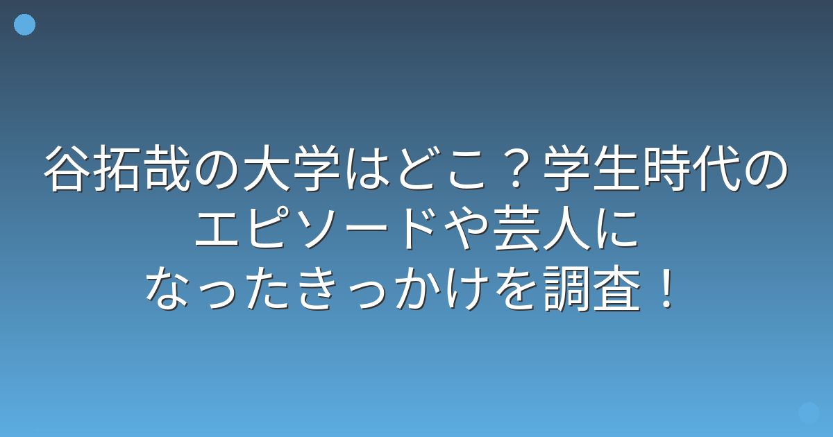 そこで今回は、谷拓哉さんの大学や学生時代のエピソード、芸人になったきっかけについて詳しく見ていきましょう!