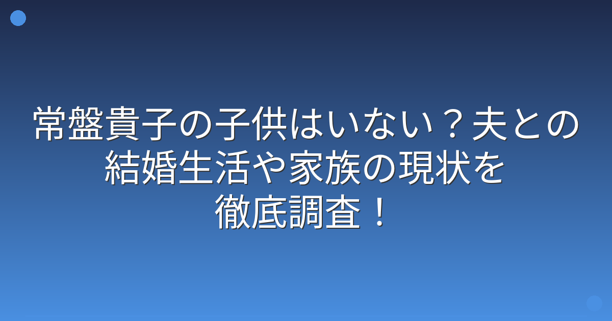 女優として長年第一線で活躍し続けている常盤貴子さんですが、プライベートな家族構成について気になっている方も多いのではないでしょうか。
