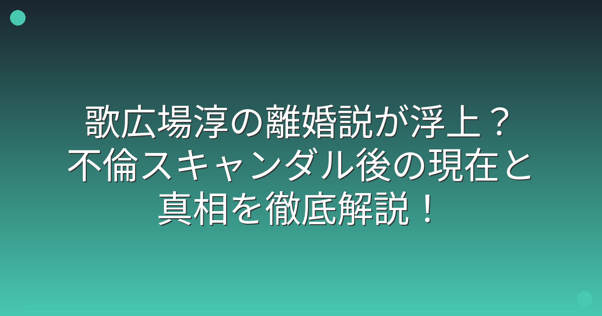 まず、歌広場淳さんの離婚説について、現時点での真相をお伝えします。