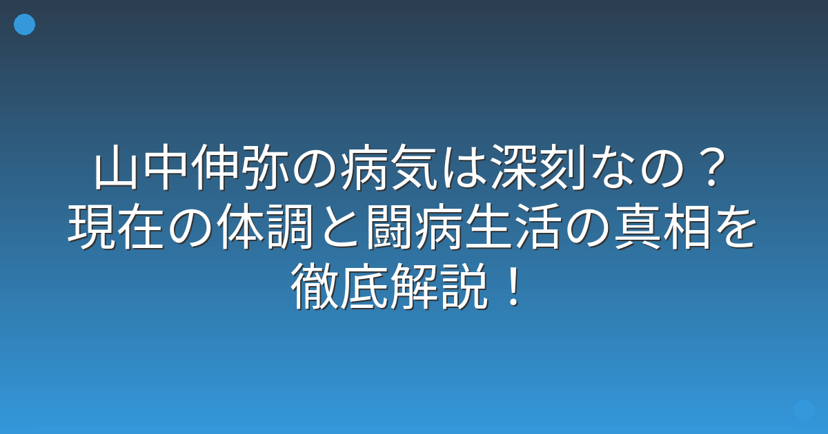 ただし、山中さん自身の具体的な病気や症状については、公式な発表は確認されていません。