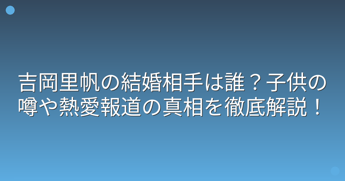 吉岡里帆さんには子供がいるのではないか、という噂も時折耳にしますが、これも事実無根であることが確認されています。